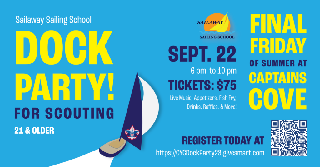 This is the final Friday of Summer at @CaptainsCove ! @sailawaysailingschool is throwing a dock party specifically for scouting on September 22nd from 6-10PM. Join for live music, appetizers, fish fry, drinks, raffles + more! The event is *21 and over* only, please plan accordingly. Don’t miss out on a fun time and the last […]