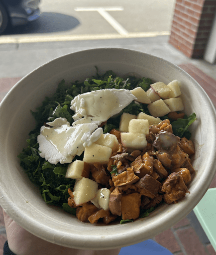 The Blissful Harvest Bowl came with roasted chicken, roasted sweet potatoes, seasonal apples, goat cheese, marinated kale. It also included warm grains,your choice of rice and base. The combination of this bowl with the apples was absolutely mouth watering!