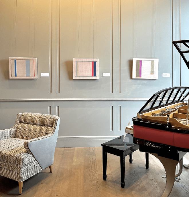 The artwork spanning the first and second floors of the hotel is by Chester-based artist Elizabeth Gourlay. This special exhibition at the hotel called, Elizabeth Gourlay: Color, Chords, and Threads, features over a decade of work by the artist.