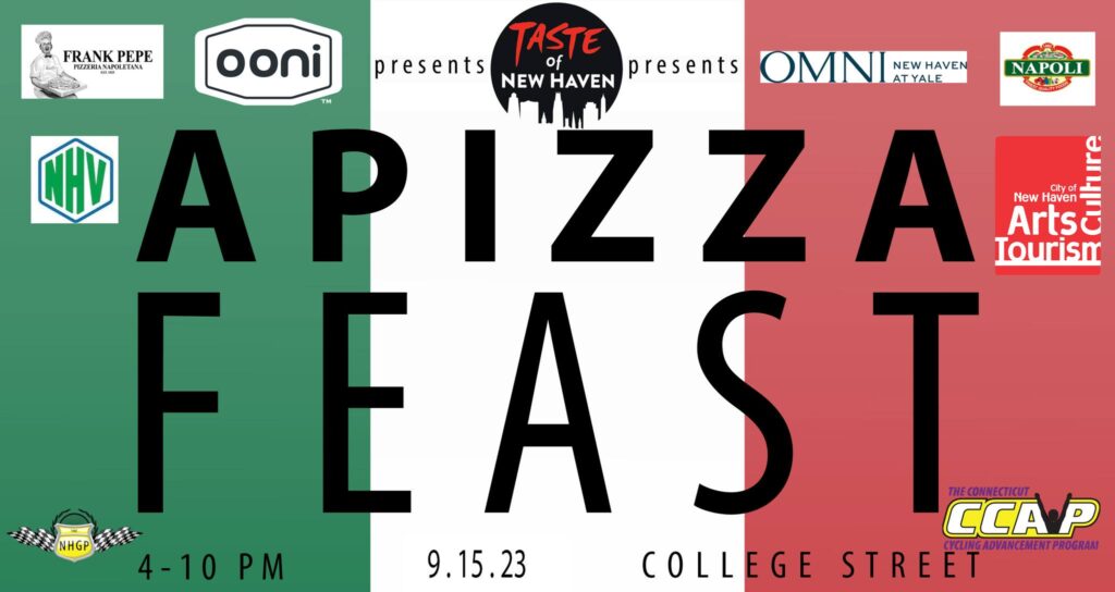 The APIZZA FEAST is back the 8th year & it’s FREE! On Friday September 15, 2023 4-10pm in Downtown New Haven offering some of the country’s best PIZZA while serving a wide range of amazing local food and beer, crafts, clothing and more. Located along College Street in the heart of the city, the APIZZA Feast takes center stage during the NEW HAVEN GRAND PRIX, a national circuit bicycle race.